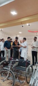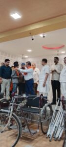 बिलासपुर (19 सितंबर 2022) [तपन गोस्वामी द्वारा ] प्रधानमंत्री नरेंद्र मोदी का जन्मदिन इस बार बीजेपी सेवा पखवाड़ा के रूप में मनाने का निर्णय लिया है। इस अवसर पर बीजेपी पदाधिकारी एवं कार्यकर्ता काफी सक्रिय हैं। वे बालवाड़ी एवं आंगनबाड़ी केंद्र जाकर वहां बच्चों को फल एवं पौष्टिक खाद्य पदार्थों का वितरण कर रहे हैं इस अवसर पर आज भारतीय जनता पार्टी बिलासपुर द्वारा स्थानीय लायंस भवन में व्यापारी प्रकोष्ठ द्वारा दिव्यांग जनों को ट्राई साइकिल, कैलीपर्स, जरूरतमंद बधिरो को सुनने की इलेक्ट्रॉनिक मशीनें सहित अन्य उपकरणों का वितरण किया गया है। कार्यक्रम में पूर्व कैबिनेट मंत्री अमर अग्रवाल, पूर्व स्वास्थ्य मंत्री एवं विधायक मस्तूरी डॉ कृष्णमूर्ति बांधी, विधायक बेलतरा रजनीश सिंह, जिला अध्यक्ष भाजपा रामदेव कुमावत, पूर्व महापौर किशोर राय, जिला महामंत्री मोहित जयसवाल, प्रदेश कार्यसमिति के अमरजीत दुआ, जिला संयोजक अरविंद गोयल, वरिष्ठ बीजेपी नेता कमल छाबड़ा, वरिष्ठ महिला नेत्री पूजा विधानी, दक्षिण मंडल संगठन प्रभारी मनीष अग्रवाल, मंडल अध्यक्ष जुगल किशोर अग्रवाल, वरिष्ठ नेता संजय मुरारका, महिला पदाधिकारी सीमा पांडे, पूनम शुक्ला, रीना गोस्वामी, प्रभा तिवारी, दीपमाला झा, स्मृति जैन, सरिता कामढे, नीलम गुप्ता, सहित अनेक कार्यकर्ता उपस्थित थे। कार्यक्रम का सफल संचालन वरिष्ठ बीजेपी नेता राजेश मिश्रा द्वारा किया गया। आभार प्रदर्शन वरिष्ठ नेता रवि गोयल द्वारा किया गया। (ब्यूरो रिपोर्ट जासूसी नजर न्यूज़ नेटवर्क)