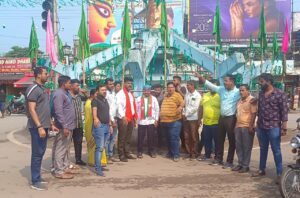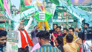 बिलासपुर ( 14 अक्टूबर 2022 ) [ तपन गोस्वामी जासूसी नजर न्यूज़ नेटवर्क ] प्रदेश में बढ़ते जघन्य अपराधों के मद्दे नजर आज बिलासपुर बीजेपी युवा मोर्चा दक्षिण मंडल के अध्यक्ष मोनू रजक के नेतृत्व में सैकड़ों कार्यकर्ताओं ने स्थानीय तार बहार चौक में प्रदेश के मुख्यमंत्री भूपेश बघेल का पुतला दहन किया गया। जलते पुतले को पुलिस युवा मोर्चा के कार्यकर्ताओं से छीनने का प्रयास किया परंतु तब तक पुतला जल चुका था। पूरे प्रदेश के साथ ही न्याय धानी बिलासपुर में भी लगातार गंभीर अपराधों के ग्राफ बढ़ते जा रहे हैं। प्रतिदिन गोली मारकर हत्या की घटना, चाकूबाजी से हत्या, बलात्कार की घटना, छेड़छाड़ की घटना, भू माफियाओं का खौफनाक आतंक को समाप्त करने में प्रदेश के मुख्यमंत्री भूपेश बघेल पूरी तरह असफल रहे। युवा मोर्चा के कार्यकर्ताओं ने मुख्यमंत्री भूपेश बघेल को यह चेतावनी दी कि जल्द ही कानून व्यवस्था में सुधार कर प्रदेश में अमन चैन कायम करें। और यदि जल्द ही कानून व्यवस्था की स्थिति नहीं सुधरी तो बीजेपी युवा मोर्चा द्वारा उग्र आंदोलन किया जाएगा। मुख्यमंत्री के पुतला दहन कार्यक्रम में विशेष रूप से शहर के पूर्व महापौर भाजपा जिला उपाध्यक्ष श्री किशोर राय, दक्षिण मंडल भाजपा मंडल अध्यक्ष श्री जुगल अग्रवाल, महामंत्री नारायण गोस्वामी , अमित तिवारी, मनीष गुप्ता एवं महिला मोर्चा ,रीना गोस्वामी , संध्या, चौधरी, सरिता कामडे ,रेखा रजक ,महेंद्र जायसवाल ,महामंत्री साहिल कश्यप,अभिषेक राज ,अंकित गुप्ता मंत्री विजय चंदेल,अमन ताम्रकार,अरूज मिश्रा,चिंटू गुप्ता,राम मिश्रा,कुणाल शर्मा,जॉन बास्को,आशिक़ मोहम्मद,शंकर दास मानिकपूरी,आयुष मेहता,वरुण दास ,अखिलेश यादव ,देव यादव ,निहाल गोहिल शामिल रहे,