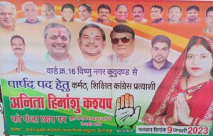 वार्ड क्रमांक 16 विष्णु नगर के प्रतिष्ठा पूर्ण उप चुनाव में प्रचार के अंतिम दिन बीजेपी और कांग्रेस ने अपनी पूरी ताकत झोंकी : तपन गोस्वामी [editor-in-chief ]