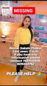 रहस्यमय ढंग से लापता युवती साक्षी ठाकुर का अता पता नहीं। 24 घंटे सोशल मीडिया ट्रायल करने वाले दुर्ग पुलिस 2 माह से लापता युवती का पता लगाने में पूरी तरह विफल। साक्षी के बिलासपुर के रिश्तेदारों ने खोजबीन तेज की : तपन गोस्वामी [editor-in-chief ]
